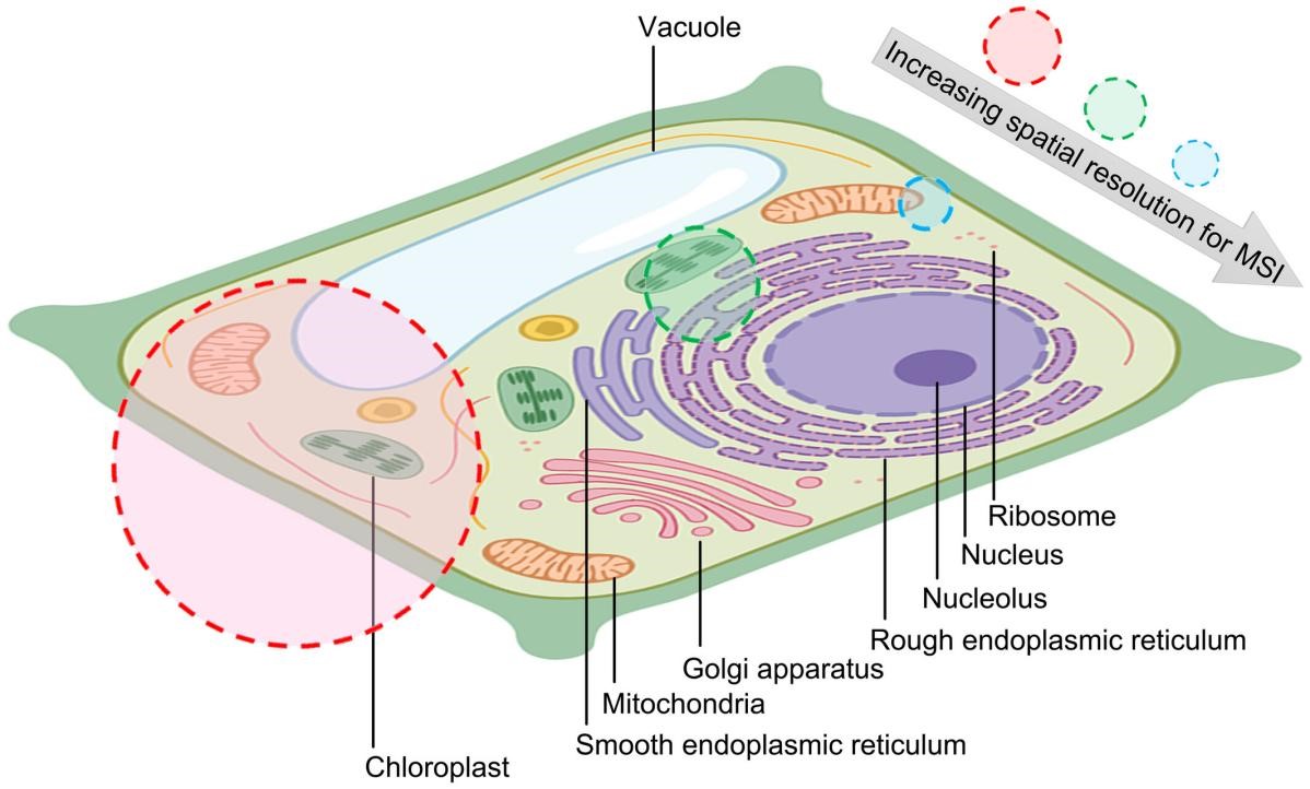 近年来,基于质谱成像(MSI)的空间代谢组学技术研发成为了植物代谢研究的前沿领域之一。MSI技术的出现为植物生长发育、繁殖和生物/非生物胁迫过程中的生物合成和调节机制等植物研究提供了一系列新见解。作者在本文中系统总结和展望了当前植物领域MSI技术的应用进展与挑战:包括(1)超高空间分辨率和电离效率的同时实现;(2)针对整株植物中内/外源物质输导的压印质谱成像方法开发;(3)定量质谱成像方法;(4)基于同位素标记的代谢通量示踪;(5)高置信度和异构体识别的化学注释;(6)空间多组学技术的整合。随着植物MSI技术越来越受欢迎,不断攻克该技术面临的各种挑战将推动植物科学的迅速发展。将MSI技术的空间分辨率从微米尺度提高到纳米尺度,将为揭示单个植物细胞内代谢物的精准时空定位提供新突破。此外,整合空间转录组等空间组学技术与新兴的MSI技术,将帮助植物科研人员更深入地研究复杂的生命活动规律。我们相信,随着单细胞MSI技术的进步,单细胞空间多组学将革新植物科学研究领域,促进产生重要新发现。
