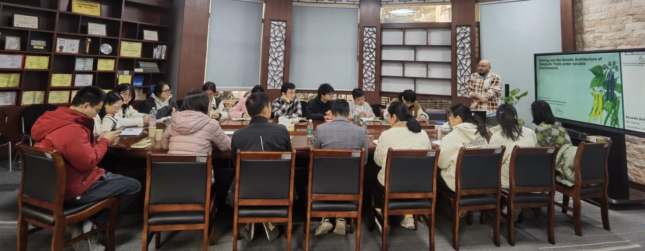Mustafa Bulut博士作了题为“Delving into the Genetic Architecture of Metabolic Traits under Variable Environments”的学术报告。系统介绍了基于菜豆(Phaseolus vulgaris)群体基因组学、代谢组学等多组学联合分析,解析了菜豆在干旱胁迫和正常生长环境下代谢物变异的遗传调控。报告激发了与会者的强烈兴趣,现场交流活跃,学术氛围浓厚。