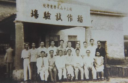 我所的奠基人丁颖教授利用多年生的普通野生稻自然杂交后代,于1933年选育出世界上第一个具有野生稻血缘的新品种中山1号,由此衍生出中山占、中山红、中山白、包选2号、包胎矮等华南地区的当家品种,种植时间超过60年,累计推广面积达1.24亿亩。他还用印度野生稻与栽培稻品种杂交育成了银印20、东印1号、暹黑7号等品种。丁颖院士是我国第一个用栽培稻与野生稻杂交开展水稻新品种选育的稻作学家,开创了野栽杂水稻育种的新途径。