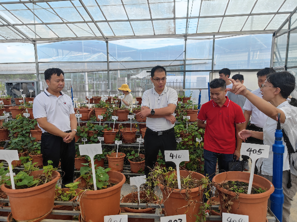 为了进一步推动院地合作,促进镇域经济高质量发展。8月30日,云浮市云城区前锋镇党委书记欧伟健,党委委员、副镇长黄树荣,副镇长闫镇涛等一行到省农科院白云试验基地考察交流。作物所副所长黄振瑞研究员,国家甘薯岗位科学家王章英研究员等有关人员陪同调研。