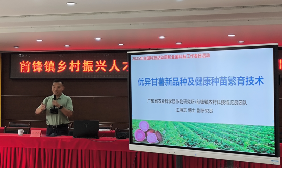 为深入贯彻落实省委关于实施“百千万工程”工作部署,科技助力云城区蔬菜产业和甘薯产业提质增效,5月30日,作物研究所农村科技特派员江炳志和蔬菜所黄旺平在前锋镇政府举办了农技培训班,前锋镇、思劳镇和腰古镇等40多名农户、农技人员以及企业负责人参加了培训。