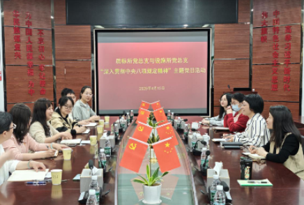 为深化党的创新理论武装,落实中央八项规定精神,推进作风建设常态化、长效化,4月15日,质标所党总支与设施所党总支联合开展“深入贯彻中央八项规定精神学习教育”主题党日活动。设施所党总支纪检委员、副所长黄琳,质标所党总支纪检委员、副所长汪敏以及双方支部党员参会。