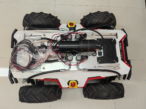 该底盘搭载的液压互联悬架系统具备自适应调节自身高度和姿态,控制四轮原地转向运动等功能,确保在丘陵、山地等复杂地形中行驶的安全性和平稳度,同时,通过调整底盘尺寸和承重结构,适配不同体积、型号的农机具,为播种、采摘和植保等多项农事工作的机械化、智能化操作提供稳定的作业平台和友好的作业环境,且支持标准协议,可进行二次开发。