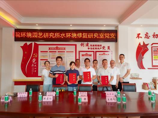 陈普照一行首先参观了水车村村史馆、文化站,了解了该村发展历史、名人乡贤、文化传承。在水车村党建室,举行环艺所水环境修复研究室党支部、植保所植保新技术党支部和华南师范大学地理科学学院教工第一支部等组团单位基层党组织与水车村党支部结对共建签约仪式。