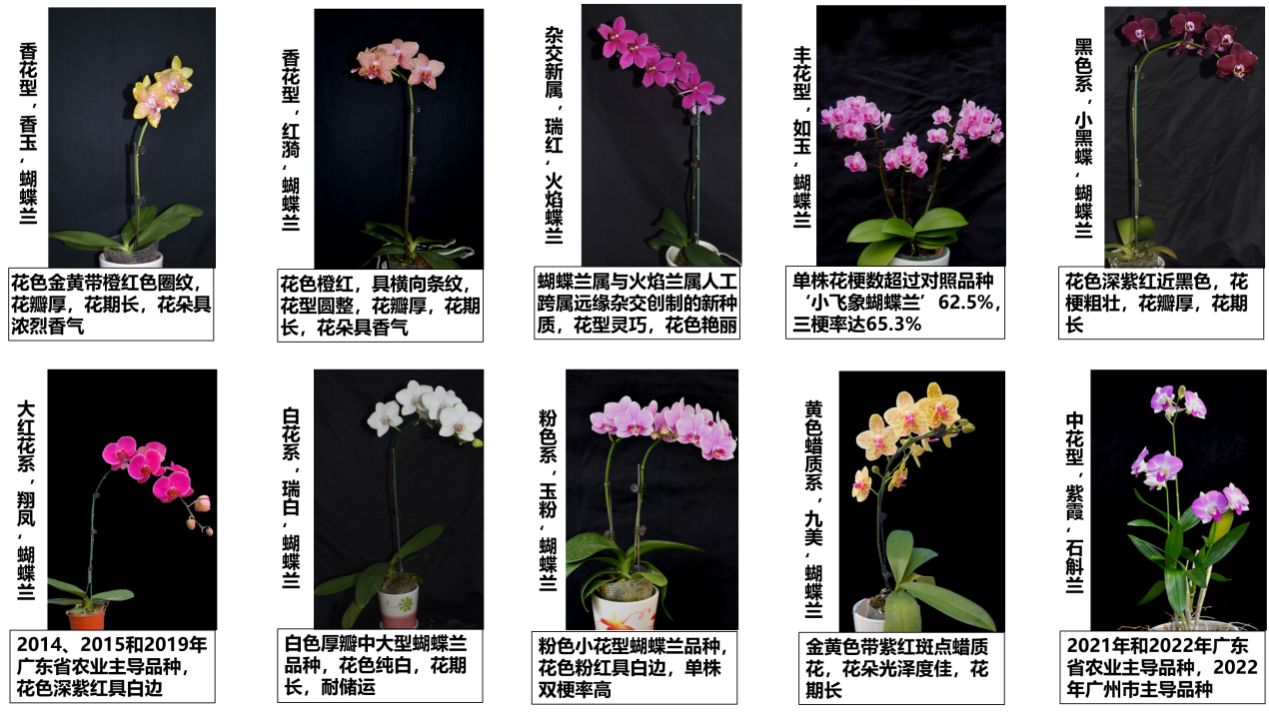 以蝴蝶兰为重点,开展热带兰花资源的收集、保存、鉴评、创新利用、选育种及配套组培和栽培技术体系优化;同时针对蝴蝶兰的重要观赏性状进行遗传规律、分子调控机理研究及关键基因和关联分子标记的挖掘。已收集保存各类兰花资源1000多份,自主选育的40个兰花新品种获得国家植物品种权,55个新品种通过省级品种审/评定,112个新杂交组合在英国皇家园艺学会登录。