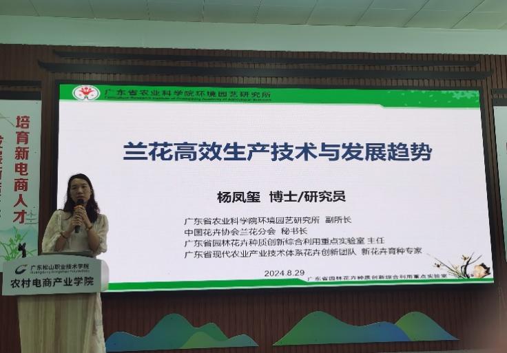 会上,杨凤玺副所长作了“兰花高效生产技术与发展趋势”专题讲座,系统总结了近年来中国花卉产业的发展现状、政策引领、科技创新以及全国花卉进出口变化情况,着重介绍了我国兰花标准化栽培管理、精准化花期调控、植物工厂与智能化栽培管理的现状与发展趋势,并结合自身在荷兰考察时的所见所闻,介绍了荷兰企业智能化栽培的新技术、新设备。翁源兰花产业园的兰花企业职工和种养大户等40余人参加,大家纷纷表示此次培训活动开拓了视野,并期待后续能举办更多专业培训和指导活动。