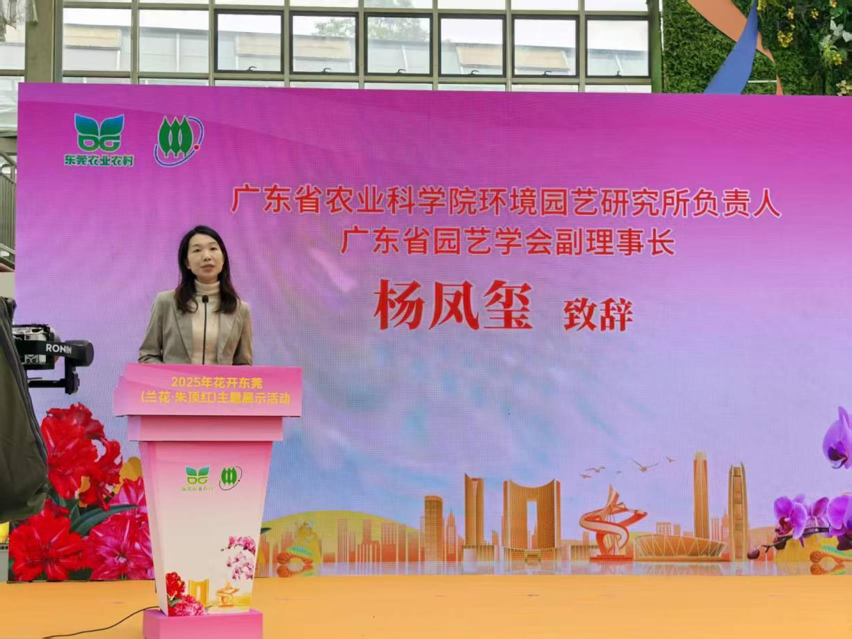 3月6日,2025年花开东莞(兰花·朱顶红)主题展在东莞农科中心正式开幕,活动汇聚100多名花友及花卉企业,展出了300多种特色新优品种,院环艺所为本次活动的指导单位和参展单位,副所长(主持工作)杨凤玺带队参加活动并致辞。