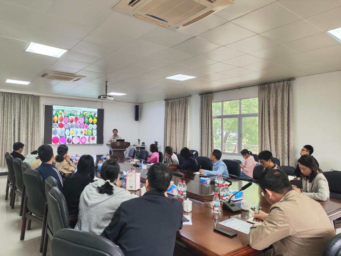 10月24日上午,院生物育种研究中心2025年第七期学术交流会在果树所召开。会议邀请中国农业大学刘青林教授、华南农业大学秦永华教授及中山大学曾榕副教授到果树所开展学术交流。本次会议由水稻所主办,果树所承办,环艺所协办,院环艺所所长杨凤玺,果树所副所长邓贵明,中心各单位科技人员、联合培养研究生等参会。会议由邓贵明主持。