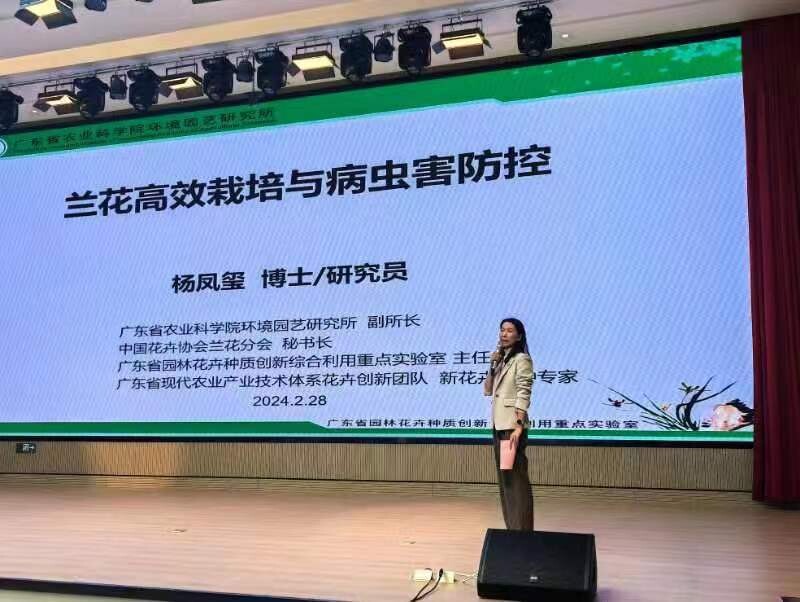 研讨会上,高江云首先作《菌根真菌在兰科植物的保育和产业中的应用》主题报告,他分析了世界范围兰科植物的威胁因素,指出兰科植物种子共生萌发技术的应用在珍稀濒危兰科植物的回归、药用兰科植物的仿生态栽培等方面都具有巨大的潜在价值。朱根发在《国兰育种与产业化的几个关键问题》报告中详细介绍了兰科植物的科属种的丰富资源和多样性、世界兰花分布情况以及国兰种类、鉴赏及育种进展等,分析了国兰产业化的现状及存在的关键问题,分享了兰花产业发展的成功经验。刘学宜的《中国传统美学精神与兰花鉴赏》报告精彩分享了兰花的文化价值、美学精神与品格内涵,让与会者充分领略了兰花文化的精神之美。杨凤玺作了《兰花高效栽培与病虫害防控》报告,介绍了兰花标准化、精准化花期调控和植物工厂与智能化高效栽培管理技术,详细讲解了兰花病虫害和兰花病毒病鉴定与监测等防控技术。