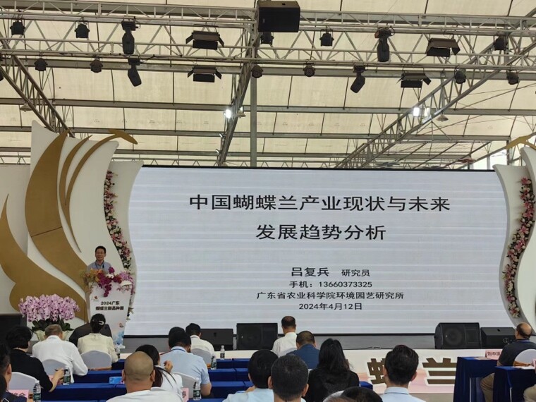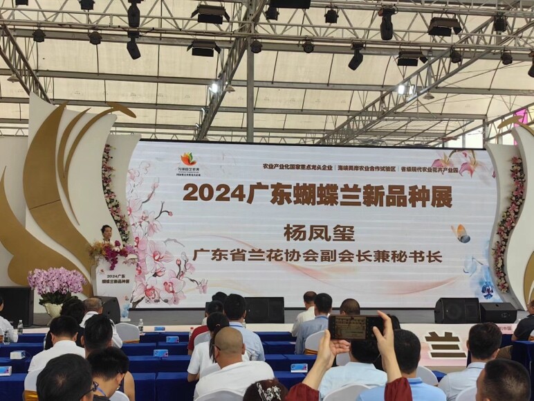 4月12日,2024广东蝴蝶兰新品种展开幕仪式在南海区里水镇万顷园艺世界农业示范区-岭南农业产业创意园举行。本次展会由广东省兰花协会、佛山市南海区农业农村局、佛山市南海区里水镇人民政府主办,广东万顷洋农业发展有限公司承办,佛山市农业农村局指导。环艺所副所长、广东省兰花协会副会长兼秘书长杨凤玺出席开幕式并致辞,环艺所吕复兵研究员受邀出席活动,并围绕蝴蝶兰产业现状与未来、产业技术体系作了精彩报告。