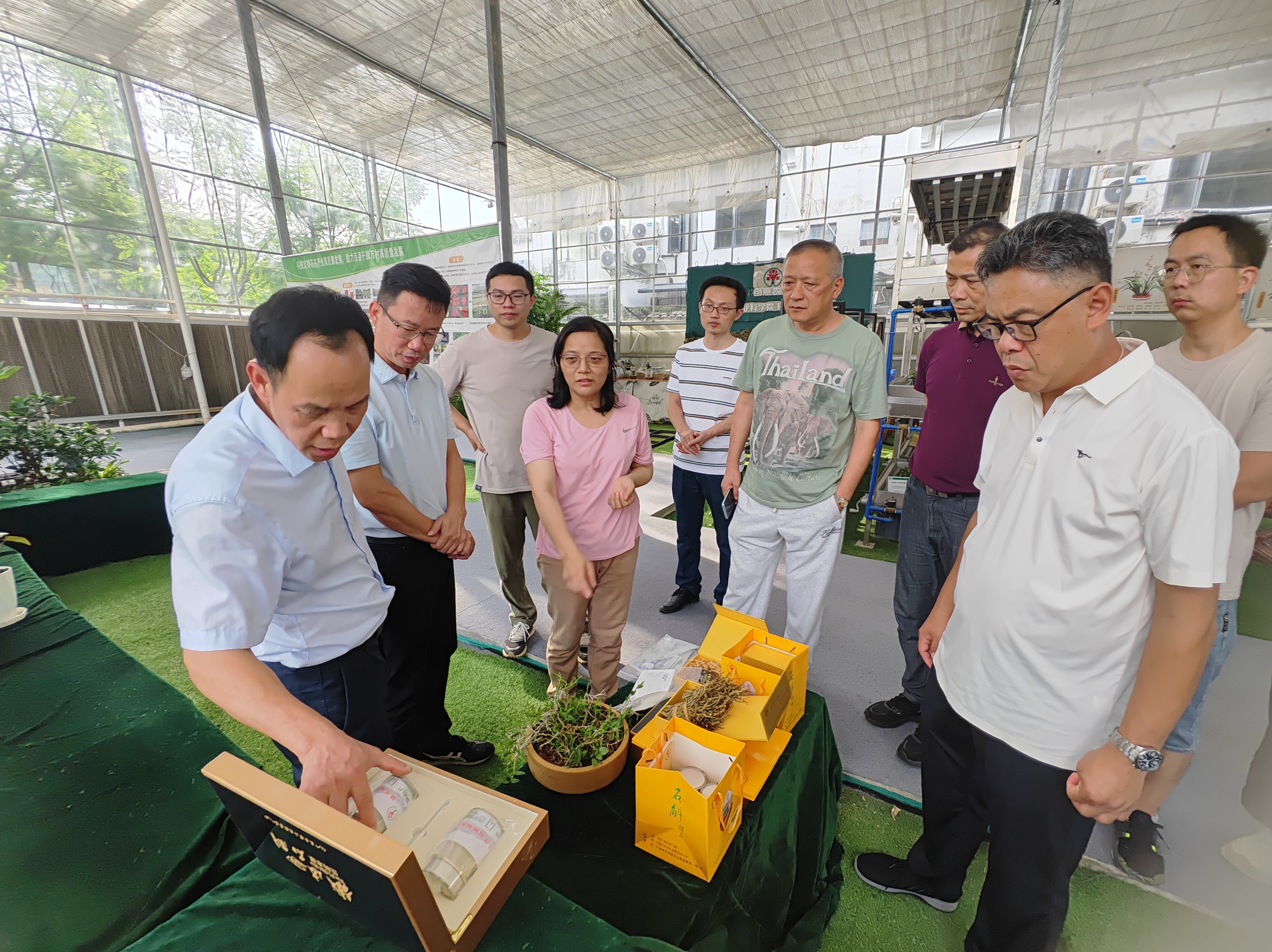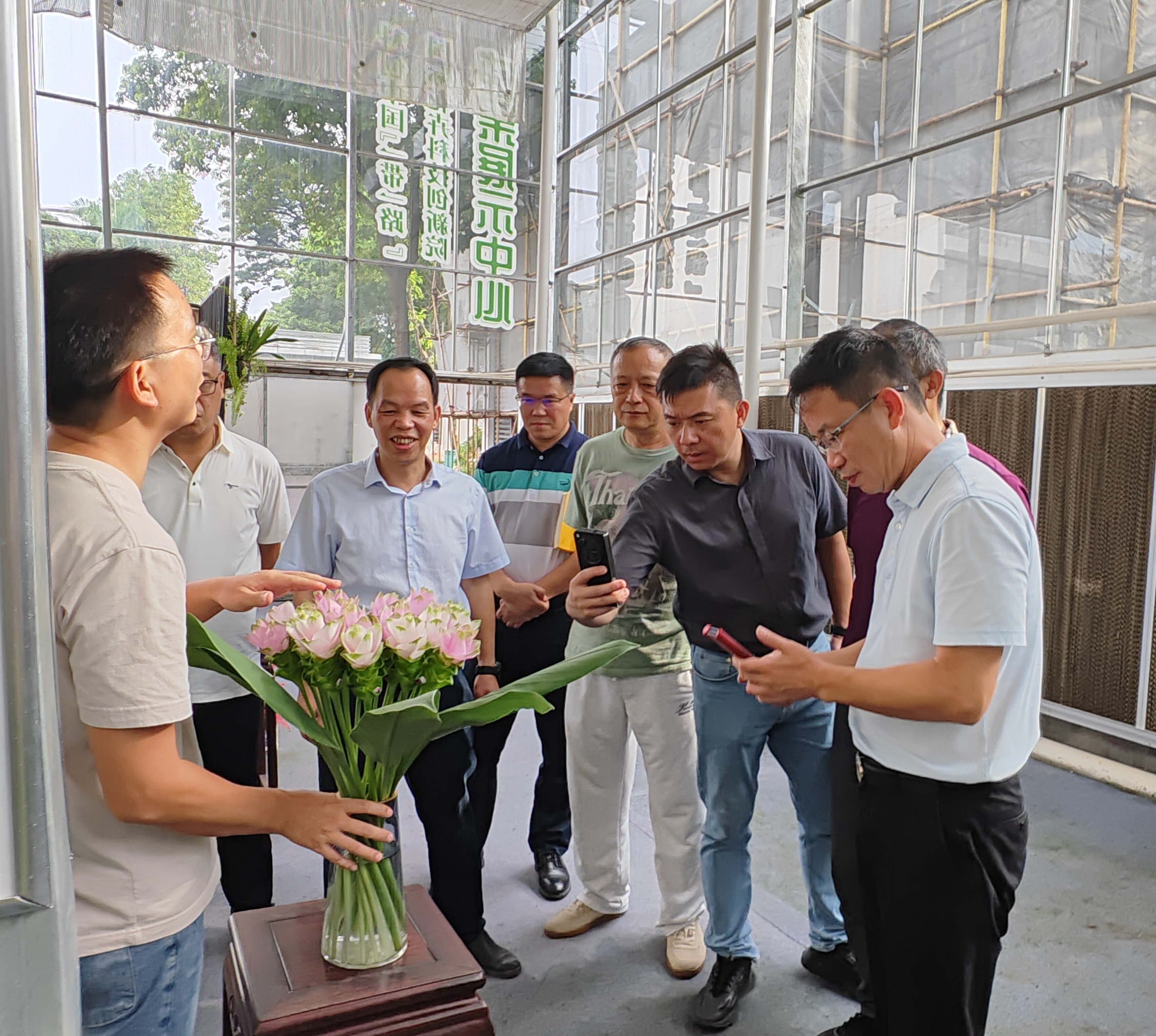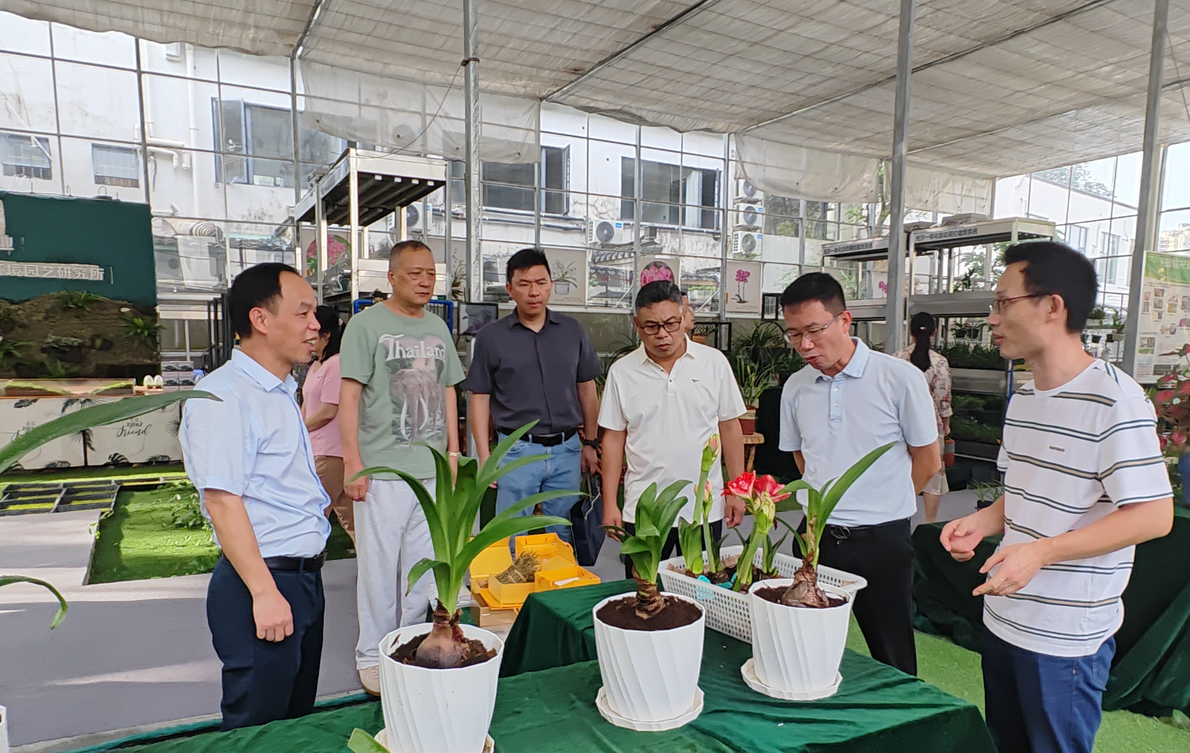 吴勐一行先后参观了环艺所科创中国“一带一路”国际花卉产业科技创新院成果展示中心和花卉超市。吴勐等镇村干部对环艺所选育的兰花、姜荷花、舞花姜、朱顶红、石斛、苔藓等园林花卉新优产品深感兴趣、赞不绝口。