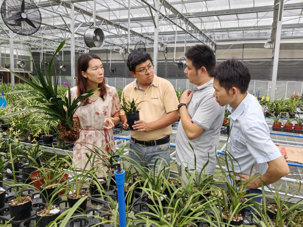 马男教授参观了我所的广东名优花卉种质资源圃,对圃内保存的华南地区兰花、朱顶红、姜荷花、食药用花卉等特色花卉的新品种选育、花期调控、采后保鲜等关键问题开展交流与指导,提出了诸多宝贵意见和建议。下一步双方将针对兰花、姜荷花的成花转变和花期控制开展深入合作。