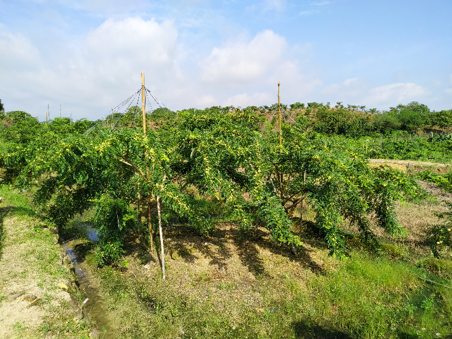技术优势:1.推广种植优质品种,克服传统生产上果实“酸涩味重、难入口”等,提升油甘品种良种率,经济效益增加。2.通过增效减量施肥等措施,提高油甘的产量和品质,与传统栽培技术相比,每亩产量提高10%以上,果实品质(优质果率)提高5%以上。3.采用矮化栽培方式,培养低干、多主枝、分枝角度较大的开心型树冠以及长枝条的结果母枝,使树体营养均衡、通风透光性好、丰产稳产,克服传统栽培方法由于整形修剪不到位导致树体高大荫蔽、通风透光性差、枝梢短而营养分布不均、产量低等问题。4.采用矮化栽培、增效减量施肥、病虫害绿色防控等,一方面提高果实品质,减少果锈的发生,商品率较以往提高10%以上;另一方面化肥用量减少30%以上,农药用量减少20%以上。