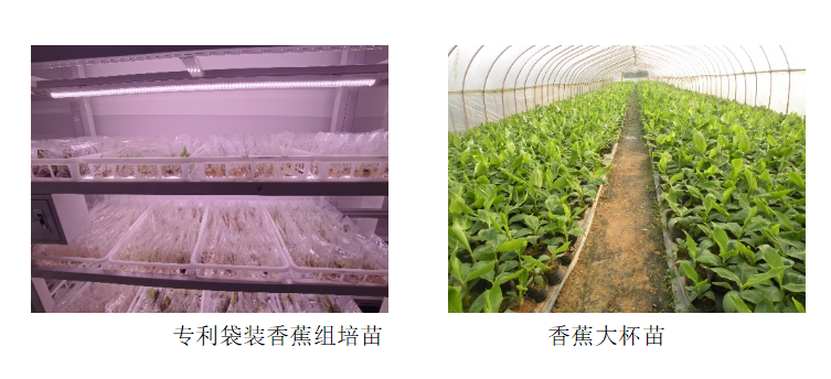 结合专利袋装香蕉组培苗生产技术,设置区域化栽培品种及配套技术方案,组建现代化组培工厂并建立ISO9001:2000质量管理体系;采用大杯和疏置假植育苗技术进行香蕉组培苗苗圃规范化育苗技术推广,推广配套组培苗各项综合栽培技术措施。