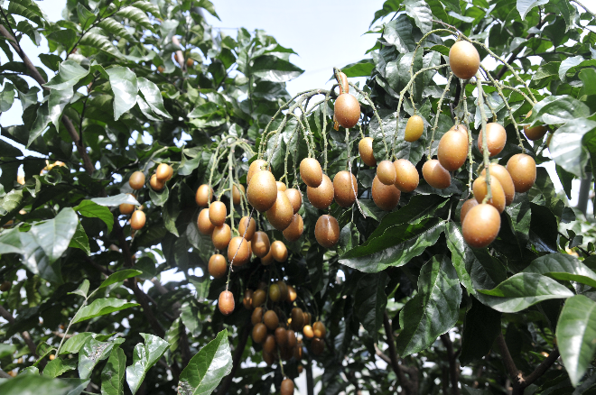 产量与效益优势:早结丰产性强,嫁接苗定植后第二年可部分试产,第五年开始进入盛产期,盛产期平均株产10-15Kg,折合亩产800Kg以上;比普通鸡心黄皮增产15%以上。比普通鸡心黄皮早熟6天以上,有利于占领早熟市场,售价高,经济效益明显。