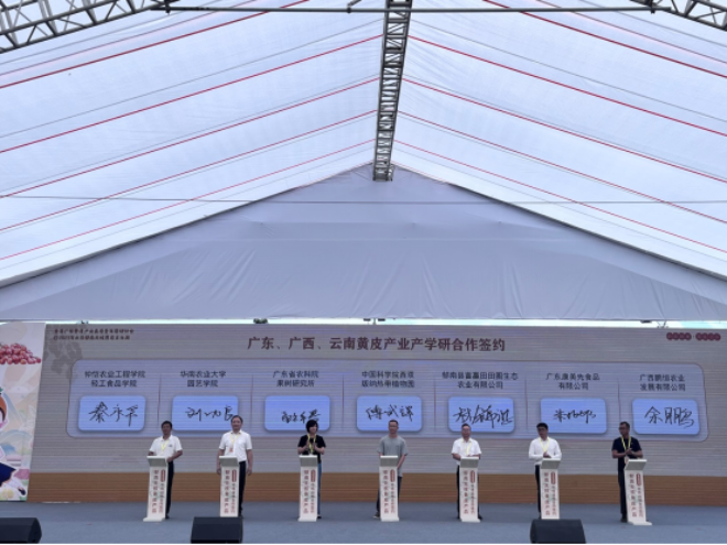 7月21日,首届广东黄皮产业高质量发展研讨会暨2023年云浮郁南无核黄皮文化周活动在云浮市郁南县建城镇举办,应郁南县委县政府邀请,果树所党委书记钟小雄和优稀水果研究室主任陆育生研究员、荔枝栽培研究室孟祥春研究员参加活动。活动上,孟祥春研究员作为广东科研单位专家代表,上台与广西、云南科研单位专家进行黄皮产业产学研合作签约。
