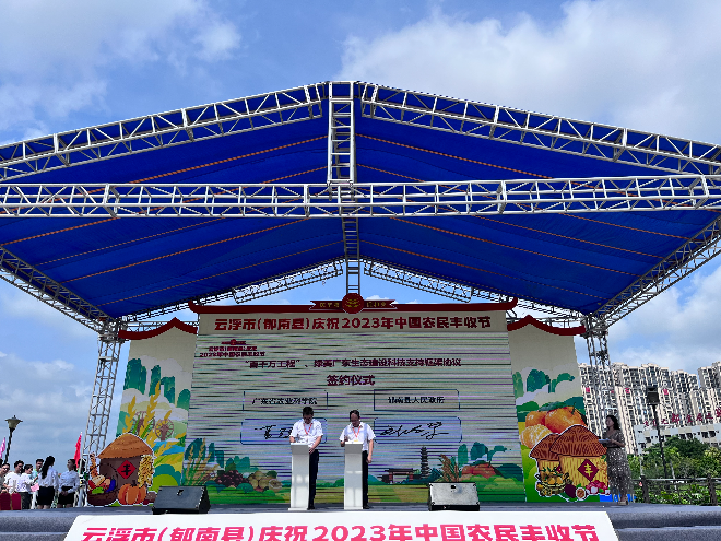 为全面贯彻落实党的二十大精神,深入贯彻习近平总书记视察广东系列重要讲话重要指示精神,以及省委省政府关于实施“百县千镇万村高质量发展工程”和绿美广东生态建设工作部署。9月22日,在郁南县庆祝2023年中国农民丰收节活动上,足球博彩平台 与云浮市郁南人民政府签订“百县千镇万村高质量发展工程”和绿美广东生态建设科技支撑框架协议。