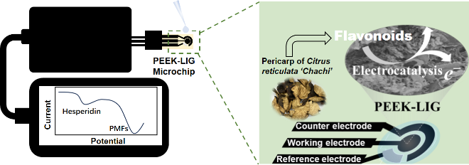 陈皮是芸香科植物橘及其栽培变种的干燥果皮,具有理气健脾,燥湿化痰的功效,是我国传统的中草药之一。已有研究表明,橙皮苷和多甲氧基黄酮是陈皮的主要功能成分。准确、快速测定陈皮中有效功能物质的含量,对陈皮及其产品的品质进行快速鉴别具有重要的意义。该研究通过激光诱导石墨烯技术,快速制备低成本的电化学芯片,并通过微型电化学工作站与智能手机集成,实现陈皮中多甲氧基黄酮和橙皮苷含量的高灵敏同步快速检测,检测结果准确度与传统高效液相色谱法相当。研究成果为陈皮功能成分快速检测和品质评价提供新方法。