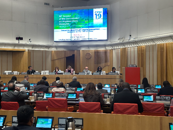 近日,为应对有害生物在世界范围内的扩散和蔓延,联合国粮食及农业组织FAO国际植物保护公约在罗马总部举办植物检疫措施委员会(CPM)第十九届会议。本次会议旨在制定统一检疫措施,加强跨国合作,应对全球植物健康挑战,促进植物检疫标准的全球实施,保障全球粮食安全。果树所李春雨研究员受邀参会并作题为“Innovation research and ongoing management measures on Foc TR4 in China”的报告,分享中国香蕉枯萎病的防控经验和进展。