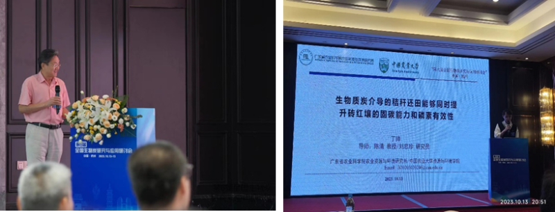 会上,林启美作“碳世界中的生物炭”大会特邀报告,生动形象地提出了“一掬生物炭能否拯救地球”的观点。丁帅作“生物炭介导的秸秆还田有助于提高砖红壤磷素有效性和有机碳封存”的报告,展示了资环所在院白云基地开展的有机物料培肥试验取得的阶段性成果,获得“优秀研究生报告奖”。