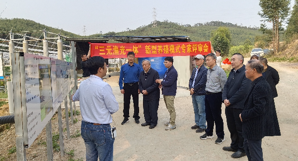 首先,专家组一行前往花都“三元渔光一体”新型养殖模式示范基地进行现场考察,黄文研究员讲解了该模式核心功能区的建设及运行参数,并带领专家组观摩了该基地内各个功能区。