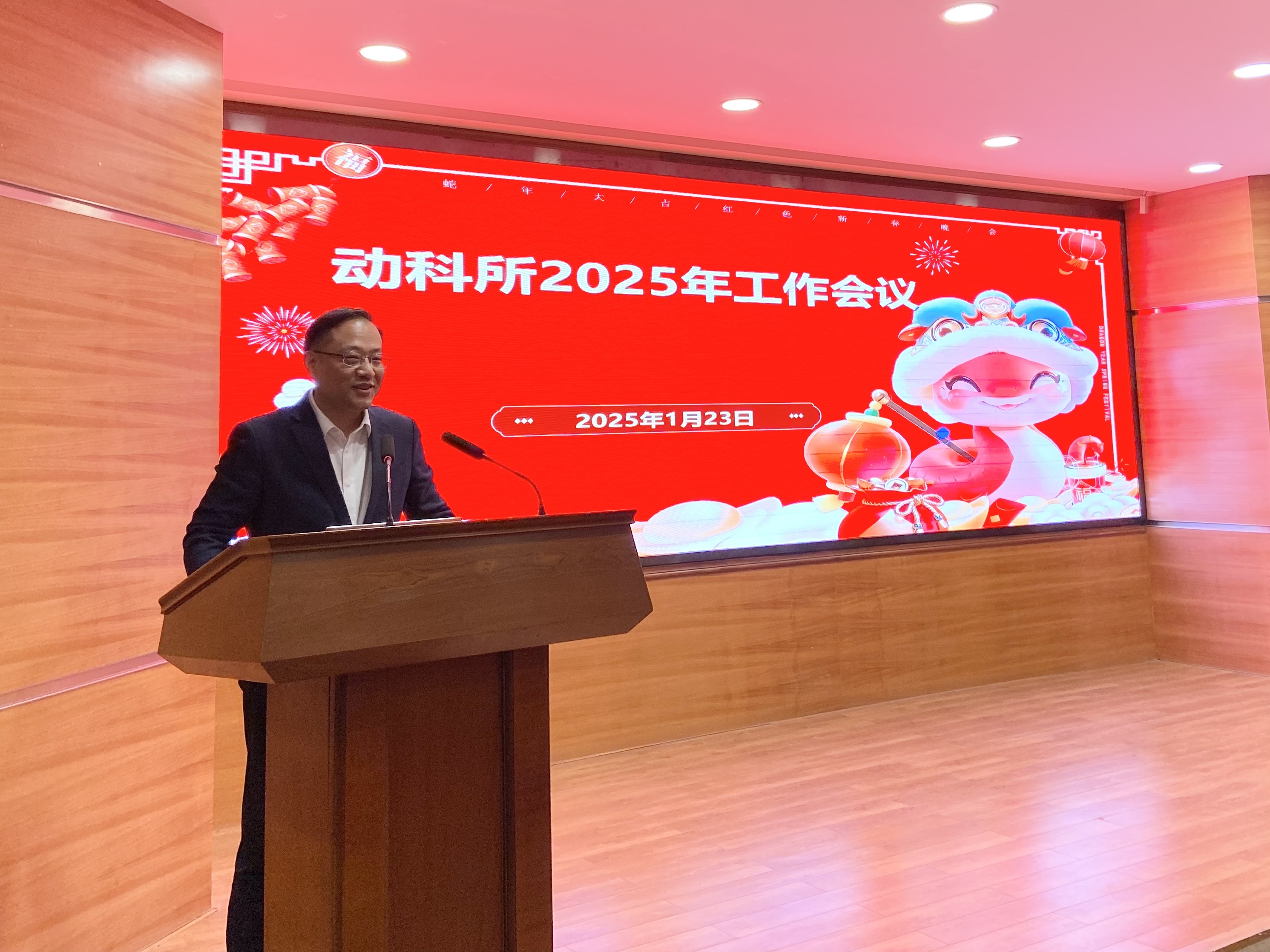 1月23日下午,动科所在所一楼会议室召开2025年工作会议,院党委书记邓诣群出席会议并作指导讲话。会议邀请了院老领导蒋宗勇,省政协委员、院正厅级领导曹俊明,猪禽种业全国重点实验室主任舒鼎铭,猪禽种业全国重点实验室办公室主任徐志宏,院科技条件部部长陈琴苓,院动卫所副所长王刚以及猪禽种业全国重点实验室秘书吕晓慧等领导专家参会。动科所党政领导班子、全体在编职工、所聘用人员等100余人参加会议。会议由所党委书记刘子放主持。