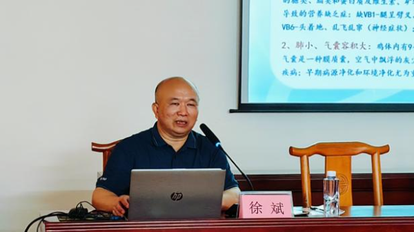 徐斌正高级畜牧师结合石坝镇三黄胡须鸡养殖及育雏过程中存在的问题,作了题为黄羽鸡健康高效育雏关键技术的培训报告;动卫所孙敏华研究员根据近年来影响黄羽鸡生长发育的常见疾病流行特点及危害,作了题为黄羽鸡常见疾病及其防控的培训报告。培训报告内容丰富、图文并茂、实用性强,深受受训人员的一致好评。