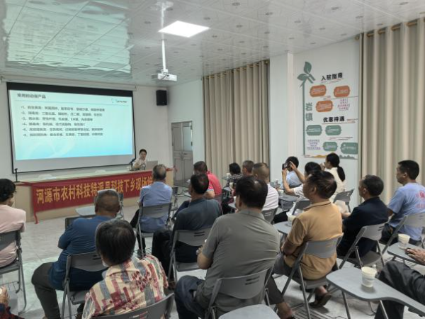 5月21日,动科所农村科技特派员崔艺燕、刘志昌、李贞明一行赴龙川县岩镇人才驿站,开展生态养鱼专题培训。岩镇各村养鱼户代表30余人参加培训。