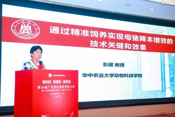 华中农业大学彭健教授作了题为“通过精准饲养实现母猪降本增效的技术关键和效果”的报告。她强调,母猪精准饲养技术是实现背膘精准目标、优化肠道菌群、保障营养供给、实现降本增效的有效技术。该团队创新母猪的精准饲养创新为“配种测膘称重,预测决定喂量,分娩测膘验证”,极大减少现场测膘工作量,并实现节料和增效。