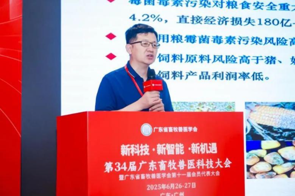 中国农业大学马秋刚教授作了题为“玉米赤霉烯酮对蛋鸡繁殖毒性及其解决方案”的报告。老龄蛋鸡对玉米赤霉烯酮较敏感,却易被忽视。报告分析了玉米赤霉烯酮影响生殖健康的作用机理,玉米赤霉烯酮影响骨骼健康的作用机理--蛋鸡钙代谢异常霉菌毒素生物降解剂开发及其缓解效果验证。他提出“以菌产酶,以酶解毒”,筛选降解真菌毒素的有益微生物,通过菌在消化道产生降解酶,降解真菌毒素。该研究为解决蛋鸡养殖中玉米赤霉烯酮污染问题提供了重要的技术支撑。