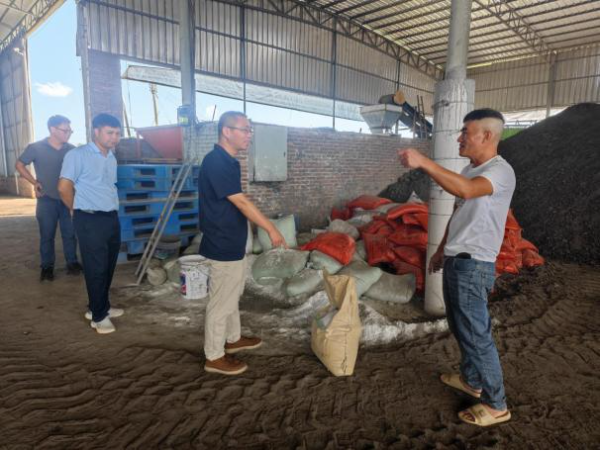 特派员先后走访了新安镇山涌村、广东天寿生物科技有限公司和茂名市名富生物科技有限公司。针对山涌村甘蔗种植面临的病虫害防治、有机肥使用等问题,特派员现场联线中国热带农业科学院南亚热带作物研究所专家进行详细解答;在天寿公司,特派员针对公司的现有的生产工艺,建议增加翻堆次数,增加堆内气体量,实现快速升温,提高发酵的效率和腐熟速度;在明富公司,则提出了利用本地甘蔗渣、橘红渣等农业废弃物作为辅料,解决蛋鸡粪水分过高的技术方案。