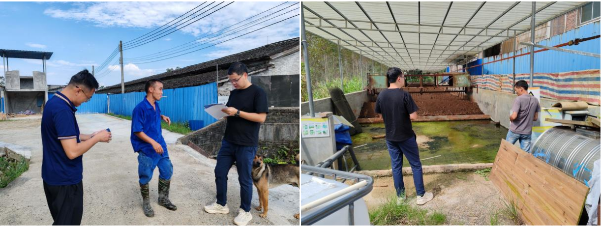 调研团队详细了解各村养殖场在粪污收集、储存、处理及综合利用方面的现状,重点关注沼液还田、粪肥发酵、异味治理等环保措施的落实情况。针对部分养殖场存在粪污处理设施运行不完善、资源化利用率低、臭气排放明显等问题,团队认真记录养殖户反映的实际困难,并结合养殖规模和自然条件提出初步改进技术建议。