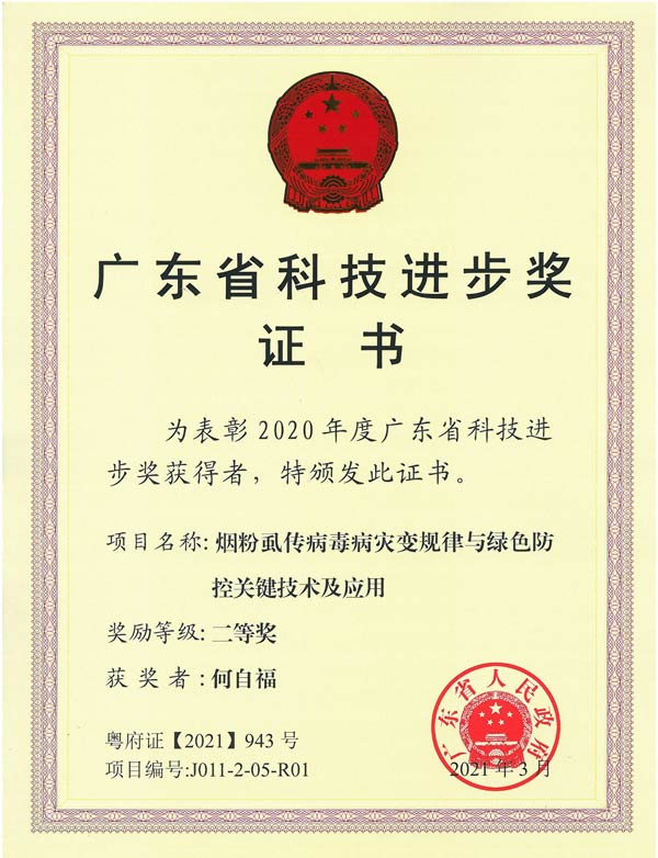2021年广东省科学技术二等奖--烟粉虱传病毒病灾变规律与绿色防控关键技术及应用
