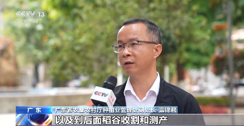 广东省农业农村厅种植业管理处副处长 温锦君:单产提升选的田块以及选育什么水稻品种,田间管理用什么方式方法,以及到后面稻谷的收割和测产,全环节一张图。