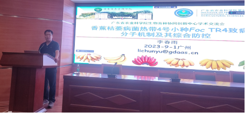 随后,李春雨研究员以“香蕉枯萎病菌热带4号小种的致病分子机制及其综合防控”为题,从香蕉的种植历史讲到综合防治,进一步讲解了香蕉枯萎病的致病机理以及抗病新品种的选育等。