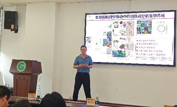 会上,周庆红教授以“江西特色山药、芋种质资源挖掘利用研究”为题,详细介绍了山药与芋品种资源创新、关键基因鉴定以及相关遗传转化体系构建等方面的研究进展。段礼新研究员聚焦“中药三萜合成生物学研究”,介绍了三萜类化合物的功能及结构多样性,阐释了其合成途径与关键合成酶的催化机制,并分享了其在绿色生物制造方面的应用。高磊教授围绕“生物催化助力植物天然产物的高效合成与结构创新”,展示了深入挖掘植物天然产物合成酶的多样性和功能特性,提出了生物酶法与化学合成相结合的功能分子开发思路,为药物研发、农业生产等多个领域带来的新机遇。3位专家的报告旁征博引、内容详实新颖。在研讨环节,参会人员与专家围绕特色种质资源基因挖掘利用、中药合成生物学、植物天然产物开发利用等研究方向开展深入互动交流,现场提问踊跃,学术氛围浓厚。