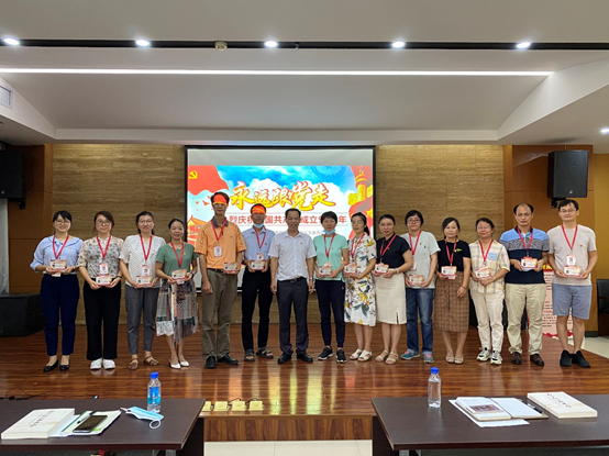 为庆祝建党99周年及建院60周年,鼓励来院工作超过20年的党员同志为院所建设、改革、发展以及广东农业科技建设所做的积极贡献,所党总支精心准备了党内书籍《为了初心和使命》作为纪念品赠予他们。同时,结合院党委关于党员“亮身份亮岗位亮承诺”的工作部署,广大党员同志以“党员工作牌”和“党员岗位牌”的形式亮出身份、亮出承诺,各支部代表上台领取工作牌和岗位牌。
