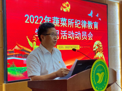 所党委书记姚汉年领学《省农科院开展2022年纪律教育学习月活动实施方案》,对我所的纪律教育学习月活动部署提出三点要求:一是要提高思想认识,结合工作实际,高质量开展纪律教育学习;二是要发扬自我革命精神,强化科研诚信,加强作风建设,提振全所团结奋进的精气神;三是要以问题为导向,知敬畏、存戒惧,确保纪律教育学习取得实效。