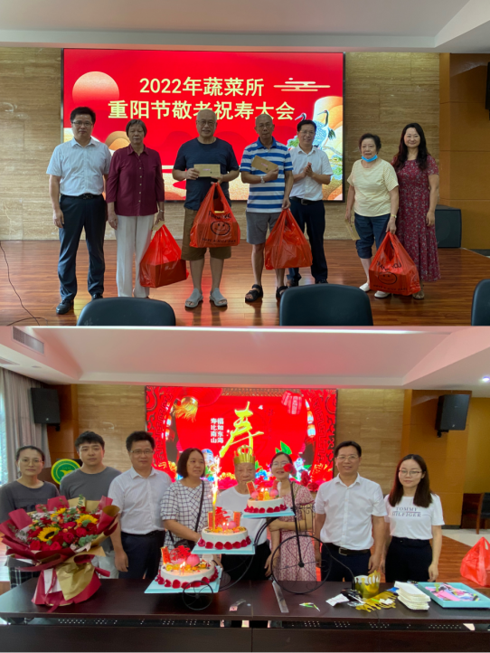 座谈会上,大家齐聚一堂,抚今追昔,共叙情谊。姚汉年代表所党政领导班子向退休同志致以节日的问候和诚挚的祝福,对为蔬菜所事业发展进步付出辛勤汗水、作出积极贡献的退休老同志表示崇高的敬意和衷心的感谢。谢大森作了蔬菜所2022年前3季度重要工作情况通报,同时表示希望退休同志能一如既往地关注所里发展。谢大森表示,所领导班子将始终秉承政治上尊重、生活上照顾、精神上关怀的理念,用心、用情做好退休职工服务保障工作,让退休同志老有所学、老有所为、老有所乐。紧接着,寿星代表张佩珍和梁景年、退休人员代表何晓明、黄河勋同志,新入职博士分别作了发言。随后,所领导为今年年满70周岁、80周岁、90周岁的寿星送上祝寿金、祝寿礼,祝愿老同志福如东海、寿比南山。
