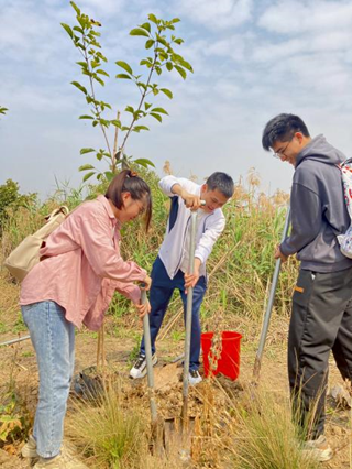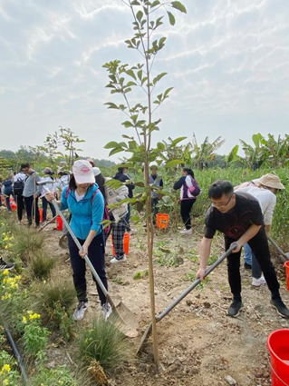 环境就是民生,青山就是美丽,蓝天也是幸福。在我国第45个植树节来临之际,大家积极投入到植树劳动中,深刻领会了“绿水青山就是金山银山”的重大理念内涵,增强了植绿、爱绿、护绿思想意识,以实际行动为绿美广东建设添彩。(陈康彩供稿)