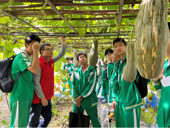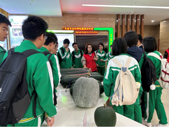 活动当天,学生们参观了我所科技成果展厅,听取了关于我所的基本情况介绍,了解我所的主推优势品种和技术等。专家们还向学生们详细讲解瓜类基因研究、试验田中光合仪的原理构造及实际应用等知识。随后,全体人员到我所大丰基地参观,目前基地种植展示了240多个华南特色瓜类、叶菜类等最新品种,包括赏食兼用型、功能保健型、加工专用型等多个专用品种。结合现场观摩,蔬菜所专家们介绍了瓜类新品种、新组合的生长情况及特性、绿色瓜类高效种植技术等,并悉心解答学生提出的关于蔬菜种植的各类问题。