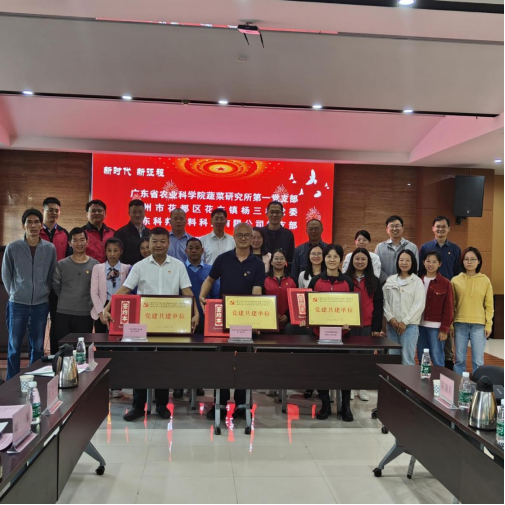 在活动座谈会上,曾秀媚领学习近平总书记文章《加快建设农业强国 推进农业农村现代化》,并分享了我所结合业务工作探索开展融合式党建的经验做法。第一党支部书记李俊星介绍了我所主要科研业务,并重点分享了第一党支部通过特色优质品种和科技支撑帮扶地方产业及企业发展的典型案例。高健宏介绍了杨三村的基本情况,并代表村“两委”班子表达了依靠科技发展富民兴村产业的迫切愿望。颜洪芳介绍了科邦公司的主营业务及开展党建工作的特色做法,他表示,希望挖掘杨三村特色资源,利用企业的市场优势和蔬菜所的科技优势,为推进全面乡村振兴作出更大贡献。三方与会人员围绕业务合作、技术需求、蔬菜种植咨询等开展深入交流讨论。会上,李俊星、高健宏、李丽华分别代表蔬菜所第一党支部、杨三村、科邦公司签订了支部共建协议书并互赠党建共建牌匾。