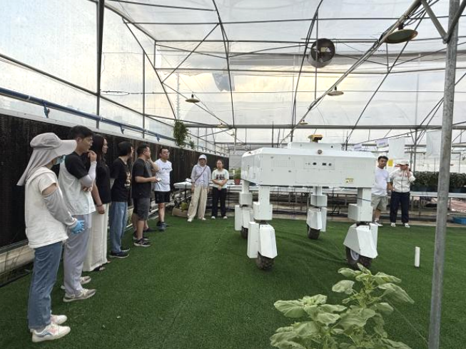 走进宽敞明亮的都市农园内,大家参观了绿美蔬适圈、瓜果长廊、农业废弃物资源循环站等应用场景。党支部书记、项目负责人张白鸽研究员讲解了该项目建设的主要内容,相关集成技术的创新点和优势。活动中,大家通过参与设施环形轨道多功能作业车的调试工作、动手体验集约化育苗实践、观看植物表型分析技术演示等,直观感受现代农机装备如何提升园艺生产效率、轻简化装置给传统育苗带来变革、科技创新如何赋能现代都市农业。