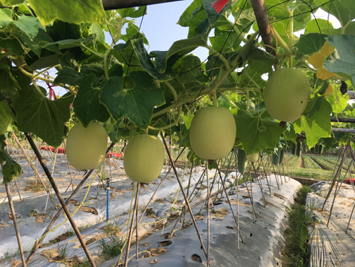 “金宝冬瓜”中早熟、生长势强,果型美观、果皮黄色、果肉洁白、细腻无渣,符合家庭消费、休闲农业等的需求,是优质的赏食兼用型冬瓜品种,市场前景广阔,推广潜力巨大。(刘文睿供稿)