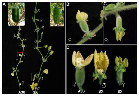 图2 节瓜全雌系A36和普通自交系SX