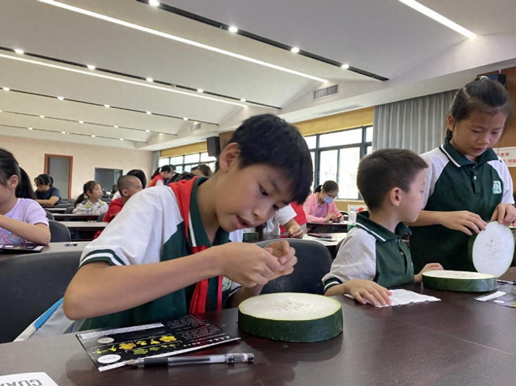 在蔬菜研究所,学生们聆听了农科专家及科研团队不断求索、勇于创新的科研故事,并参观广东省蔬菜新技术重点实验室和瓜类、茄果类、叶菜等不同蔬菜作物的组培间。冬瓜品质检测农趣小实验、评选“科学新星”等互动参与环节,深受欢迎。