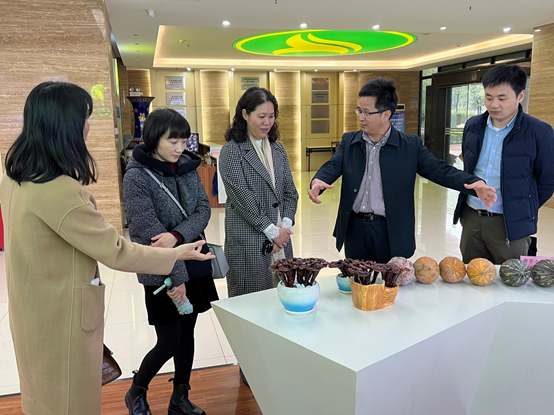 会前,谢大森邀请何霞一行参观了我所一楼展览厅并对展示品种、展板内容作简要介绍。会上,谢大森对何霞一行的到来表示热烈欢迎并介绍参会专家。而后,骆艺副所长汇报了蔬菜产业现状、蔬菜所品种技术、科技创新、乡村振兴、科技成果、服务产业、国际合作等工作情况。