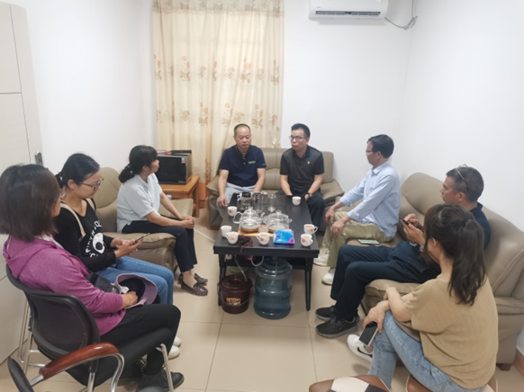 在德庆绿环农产品有限公司,冼业权主任详细介绍黄瓜榨的加工流程、产品包装及品质情况,专家们详细了解该公司的生产规模、绿环品牌建设和五年发展规划,同时就目前市场收购小黄瓜存在问题进行探讨,何锦斌董事长也表达与省农科院蔬菜所黄瓜研究团队研发合作的意愿。