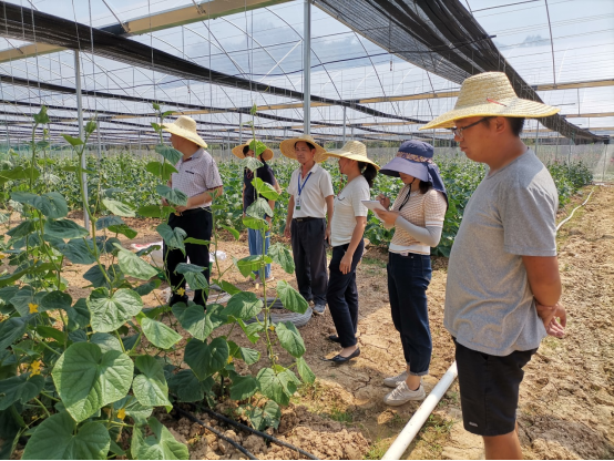 2022年9月14日我所专家团队赴五华县蔬菜产业园实施主体企业广东汉光超顺农业股份有限公司安流生产基地,对设施大棚黄瓜新品种展示种植管理进行现场技术指导,公司负责人陈志军详细介绍了产业园当前蔬菜生产情况,对我所给予的品种和技术上的支持表示感谢,双方对后续观摩培训活动方案、技术标准制定等方面进行深入交流。(李涛供稿)