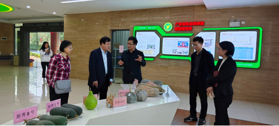 会前,谢大森邀请刘铁斌一行参观了我所一楼展览厅并对展示品种、展板内容作简要介绍。会上,谢大森详细介绍了我所蔬菜新品种、新技术、科技成果、服务产业、科企合作等工作情况,并分享了我所科企合作、服务产业的成功案例及经验做法。